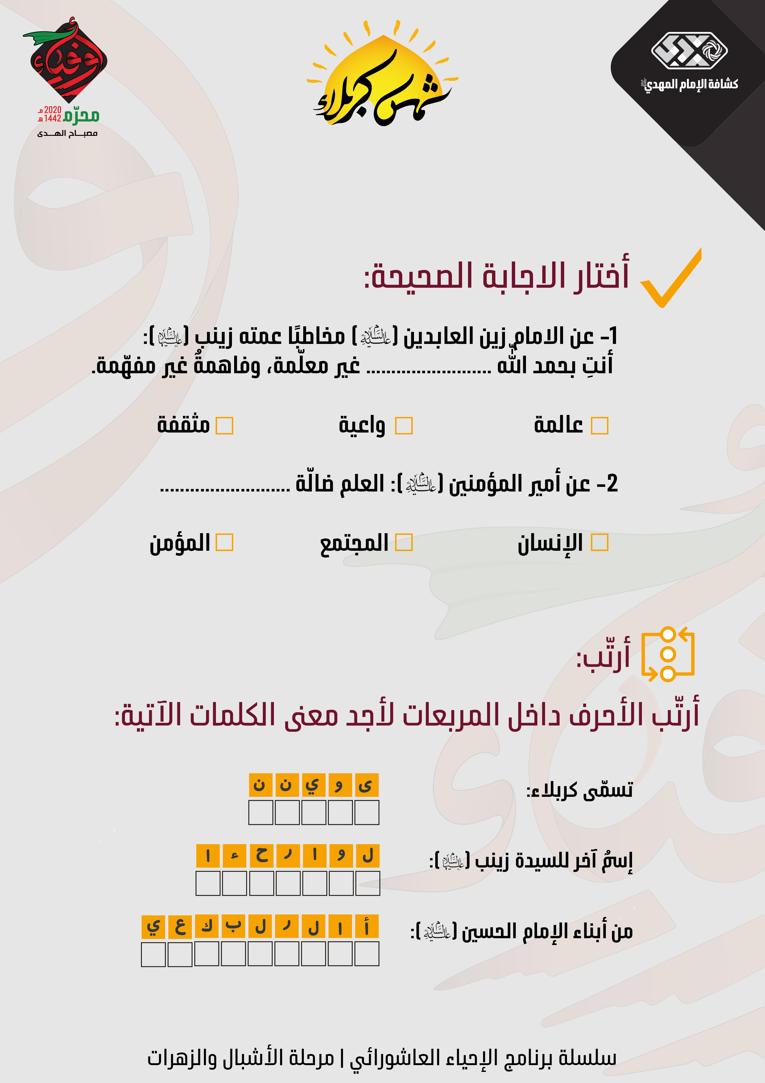 المسابقة العاشورائية 2 سؤال يومي يرسله القائد على مجموعة الواتساب