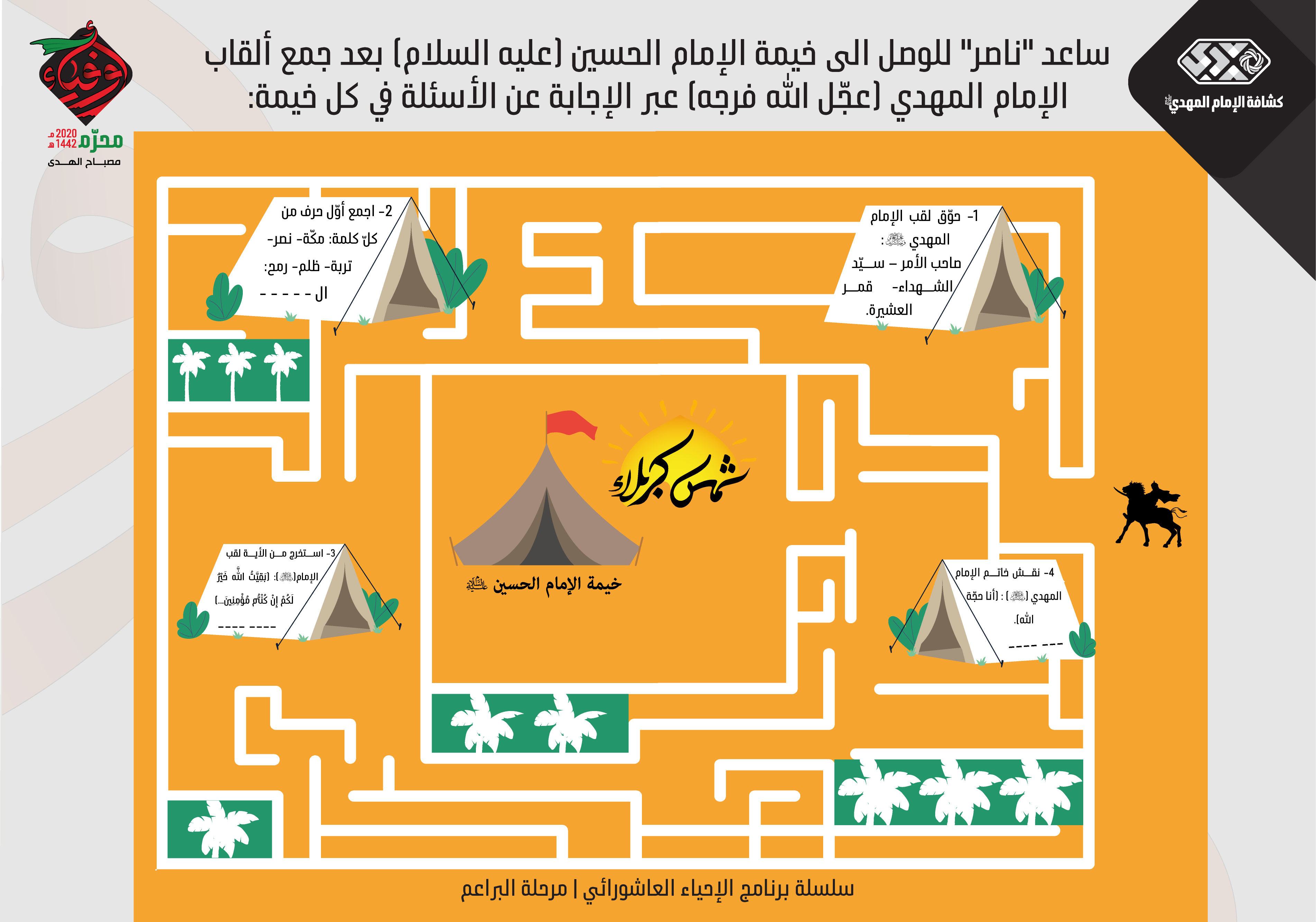 - يوزّع القائد على المشاركين بطاقة النشاط ويطلب منهم جمع ألقاب الإمام المهدي الموجودة في البطاقة.