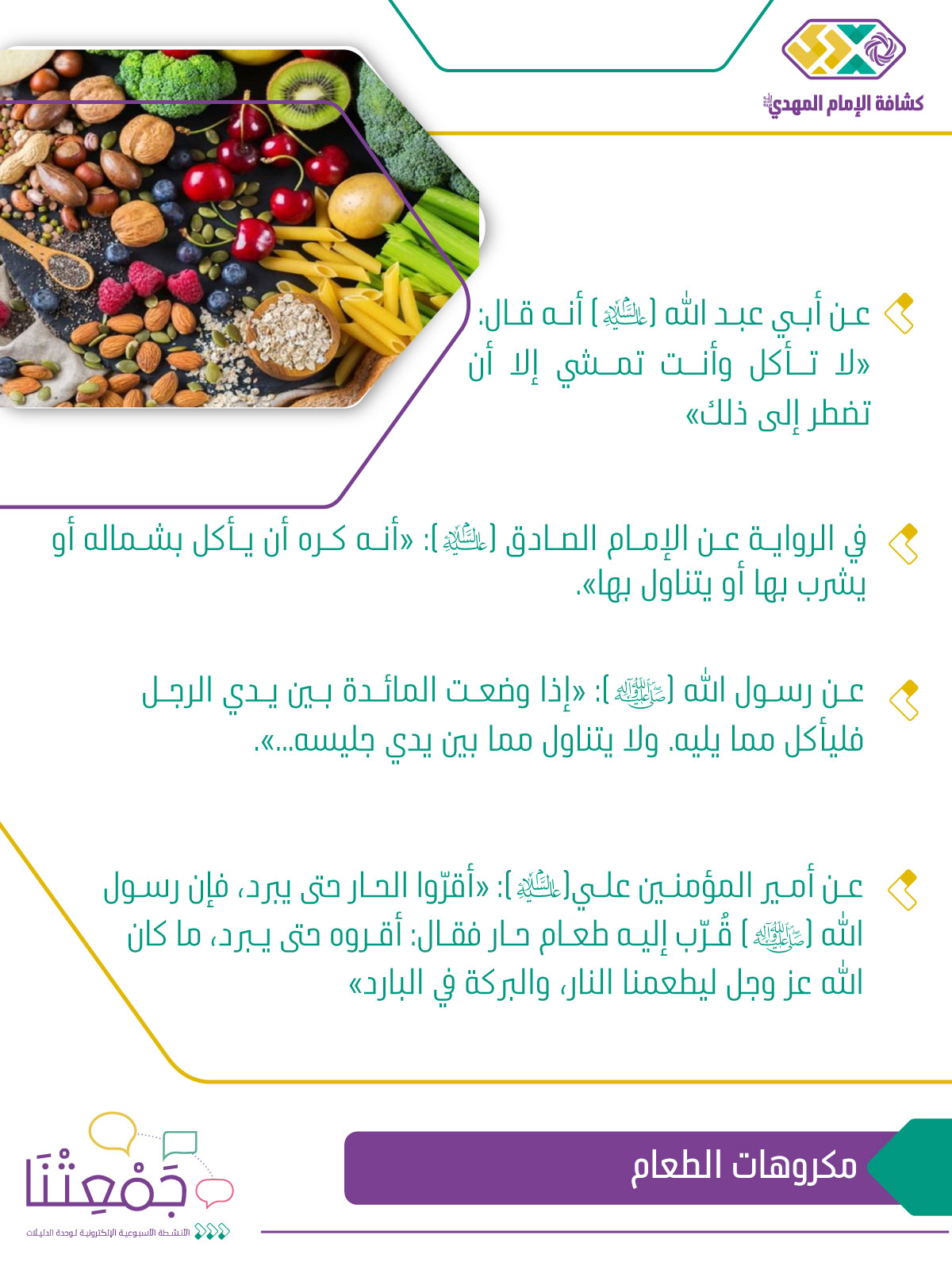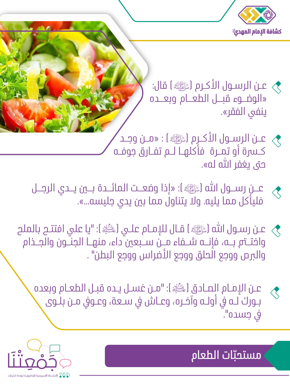 توزيع أحاديث على الدليلات لاستخراج آداب الطعام منها |