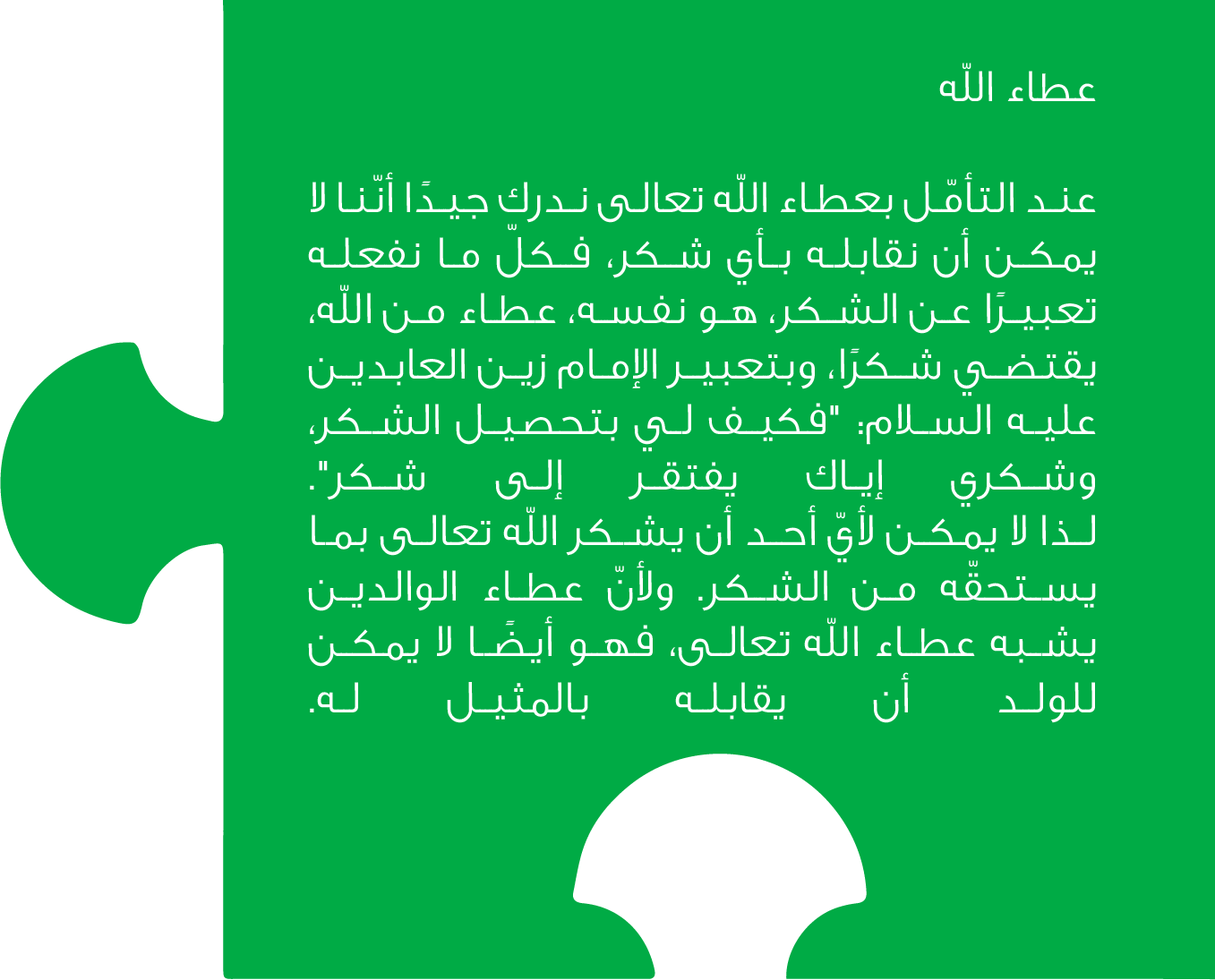 | لطائف رحمانية | تقوم القائدة بتوزيع بطاقات البازل الملونة التي تحتوي اللطائف على الأرهاط وعند الإنتهاء تعرض صورة البازل التي تحتوي على عنوان الورشة ( وبالوالدين إحساناً). | 10د | ||