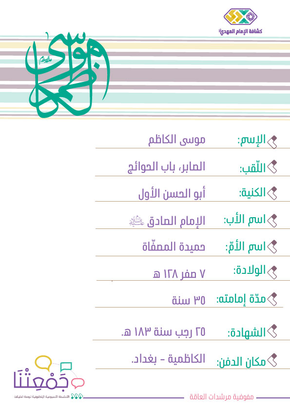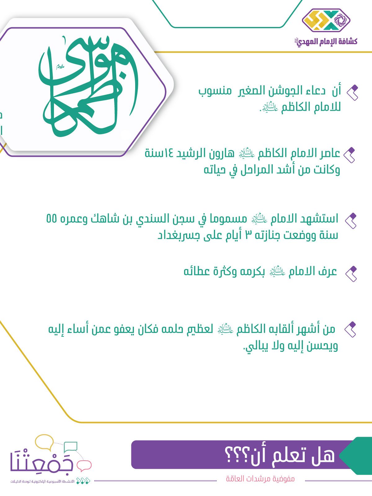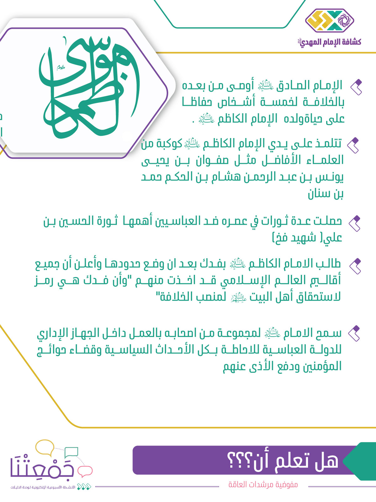 ارسال فيديو حول هوية الإمام الكاظم عليه السلام ثم حديث حول بعض من سيرة الإمام الكاظم (عليه السلام) ووجوب التعرف إلى سيرة الأئمة (عليهم السلام) |