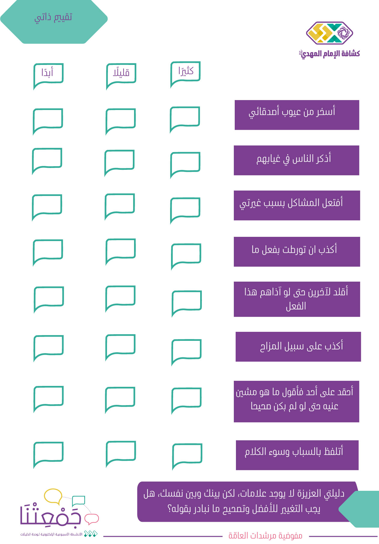 • تقييم ذاتي حول كبائر اللسان للدليلات ومناقشتها