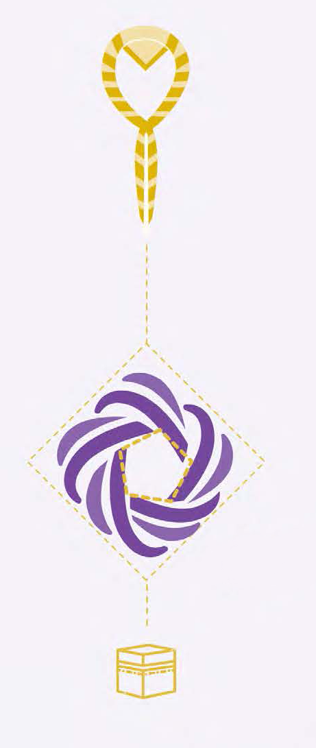 - الأبيض (لون الخلفية): يرمز إلى العطاء والنقاء والتوجه الخالص لله.