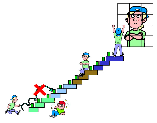 انسجاماً مع تعريف الطريقة الكشفية ، فإن التربية الذاتيّة هي المحور الأساسي فيها ،لذا على الفرد أن يسعى بنفسه لتحصيل التربية بمفهومها الشمولي، ولكن بالاعتماد على نظام متدرج يساعده في تحقيق الأهداف المنشودة، وهو أشبه ما يكون بدرج وضعت على كل درجة منه قطعة مربعة تمثل جزء من رسمة، وعلى الفرد أن يصعد الدرج ليكمل الصورة ، وبإكتمال الصورة تظهر صورة بنائه التربوي جلية .