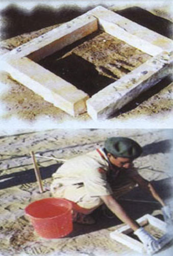 3- نحيط الأثر بحاجز من التراب او الورق المقوى أو الخشب.