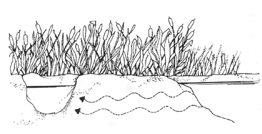 أحفر حفرة بجانب مستنقع أو بئر أو ما شابه يكون لها امتداد داخل الأرض للمياه, وبعد فترة تتجمّع إليك المياه الصّافية من الجوانب وتكون جاهزة للاستعمال بفعل تصفيتها من خلال الحصى والرّمل والأعشاب التي داخل التّربة.