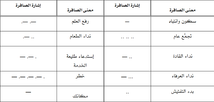 أما معاني إشارات الصافرة فهي مُبيّنة في الجدول أدناه: