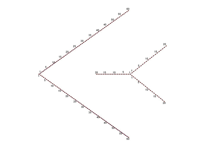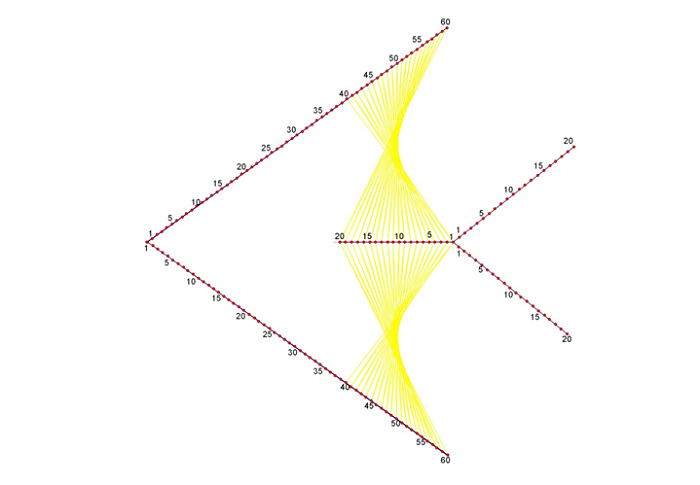 2. إبدأ بالتّشبيك على الشكل التالي: 60-20، 59-19، 58-18، 57-17، 56-16، 55-15، 54-14، 53-13، 52-12، 51-11، 50-10، 49-9، 48-8، 47-7، 46-6، 45-5، 44-4، 43-3، 42-2، 41-1.