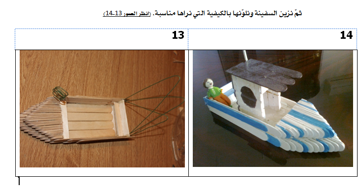 ثمّ نزين السفينة ونلوّنها بالكيفية التي نراها مناسبة. (انظر الصور 13-14)
