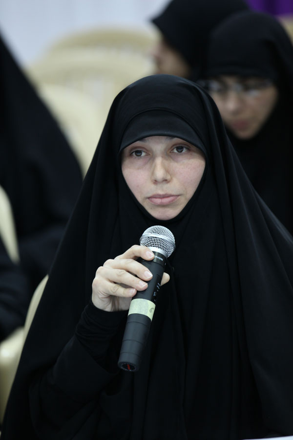 o زوجاتكم اللاّتي هن شريكاتكن، إن لم يكنّ متآلفات معكم فلا يحق لكم أن تبقوا مكتوفي الأيدي...تريّثوا وسايروهن، حدثوهن بشيء مما تعرفون من معارف وعلوم. رغّبوهن بالصلاة والدعاء.