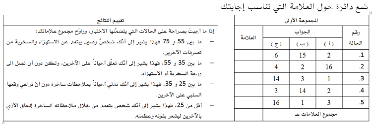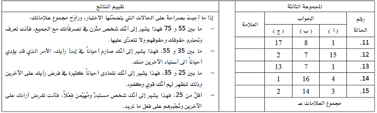 في ما يلي نعرض للاختبار الشخصي حيث يبين لنا بعضًا من جوانب شخصيتنا: