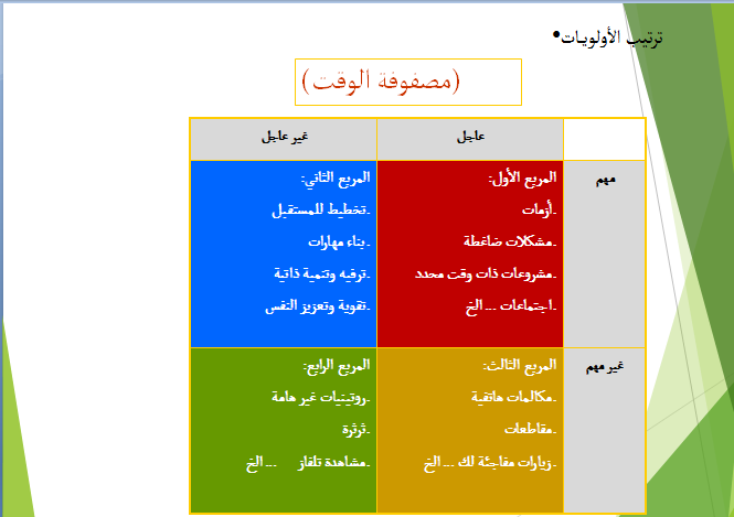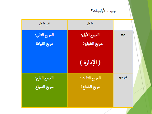 المربع الثالث:عاجل/ غير مهم
