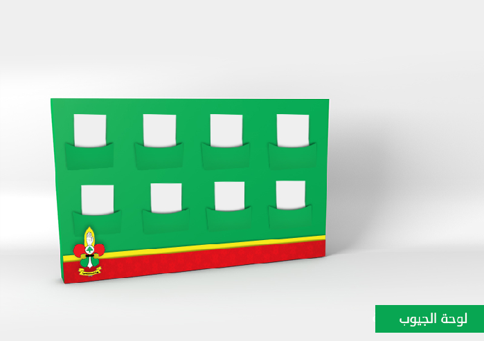 لا بد من توفر اللوح ( كارتون مضغوط أو فلين مثلاً ) ، وطبق البرستول له لون هادئ ، قلم رصاص ، ومسطرة ، بعد ذلك يقوم المعلم بتقسيم ورق البرستول إلى تقسيم متعارف عليه في البيئة التي يتعامل معها مثلاً إذا كان عمق الجيب 4 سم والمسافة الرأسية بين كل جيب وآخر 12 سم فإن عليه القيام بالتقسيم التالي ، يبدأ من أسفل ورق البرستول ومن إحدى ضلعيه الرأسيين ويقوم بوضع لعلامات الترقيم عند القياس المطلوب فيبدأ بقياس 12 سم ويضع علامة ثم 4سم ويضع علامة وهكذا وعلى طول الضلع حتى يصل إلى نهاية الضلع ومدى السماح بتكوين جيب على هذا الضلع ومن ثم يتجه إلى الضلع الرأسي الموازي الآخر ويطبق ما طبقه في الضلع الأول على أن تكون بدايته من حيث بدأ في الضلع الأول ، ثم يقوم بعمل توصيل خطول ما بين النقاط التي قام بوضعها على ورق البرستول ، ومن ثم يقوم بعملية الثني عند مقاسات الجيوب فقط فيلاحظ بأن لكل جيب خطين الأسفل نسميه قاع والعلوي نسميه قمة وفي عملية الثني عليه أن يقوم بعمل قلب للمسميات السابقة فيجعل القاع السابق قمة وذلك بتحريكه نحو القمة السابقة ، مع ملاحظة أن القمة السابقة لا تتحرك وسوف تصبح قاع المستقبل للجيب ، ولعل المعلم أن يستعين بمسطرة طويلة لها حافة حادة لتساعدة في عمليات الثني ، بعد أن ينتهي المعلم من عملية الثني سيلاحظ بأن ورق البرستول أصبح شبيهاً بالدرج ، وعليه الآن أن يقوم بتثبيت تلك الثنيات باستخدام ضاغطة الدبابيس ولكن عليه أن يثبت كل جيب على حده فلا يقوم بتثبيت الثنيات من طرف دفعة واحدة ثم يتجه لتثبيت الجهة الأخرى لأن ذلك قد يؤدي إلى ظهور بعض التكسرات على اللوحة ، وعليه أن يثبت كل جيب على حده ، بعد ذلك يقوم بتثبيت ورق البرستول على اللوحة المتواجدة باستخدام ضاغطة الدبابيس وما شابه ذلك ومن ثم يقوم بعمل إطار للوحة ، وثقبين في أعلاها .