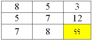 الشرح: في كلّ صفّ مجموع الأرقام الفرديّة لايعادل مجموع الأرقام الزوجيّة.