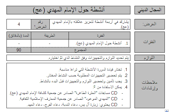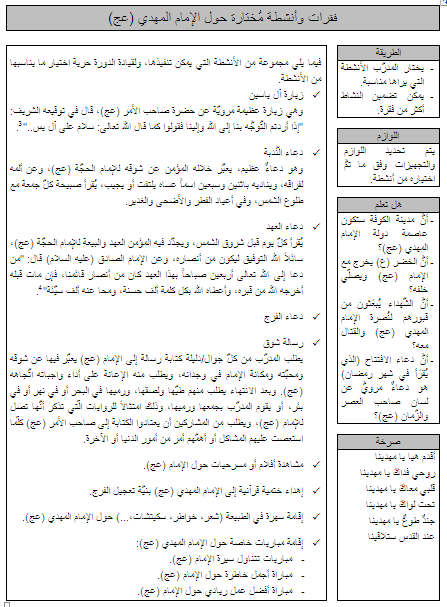 نضع بين أيديكم مجموعة من أفكار الأنشطة التي تتمحور حول الإمام المهدي (عجل الله تعالى فرجه) من ضمن إصدار دورات قادة الجماعات.