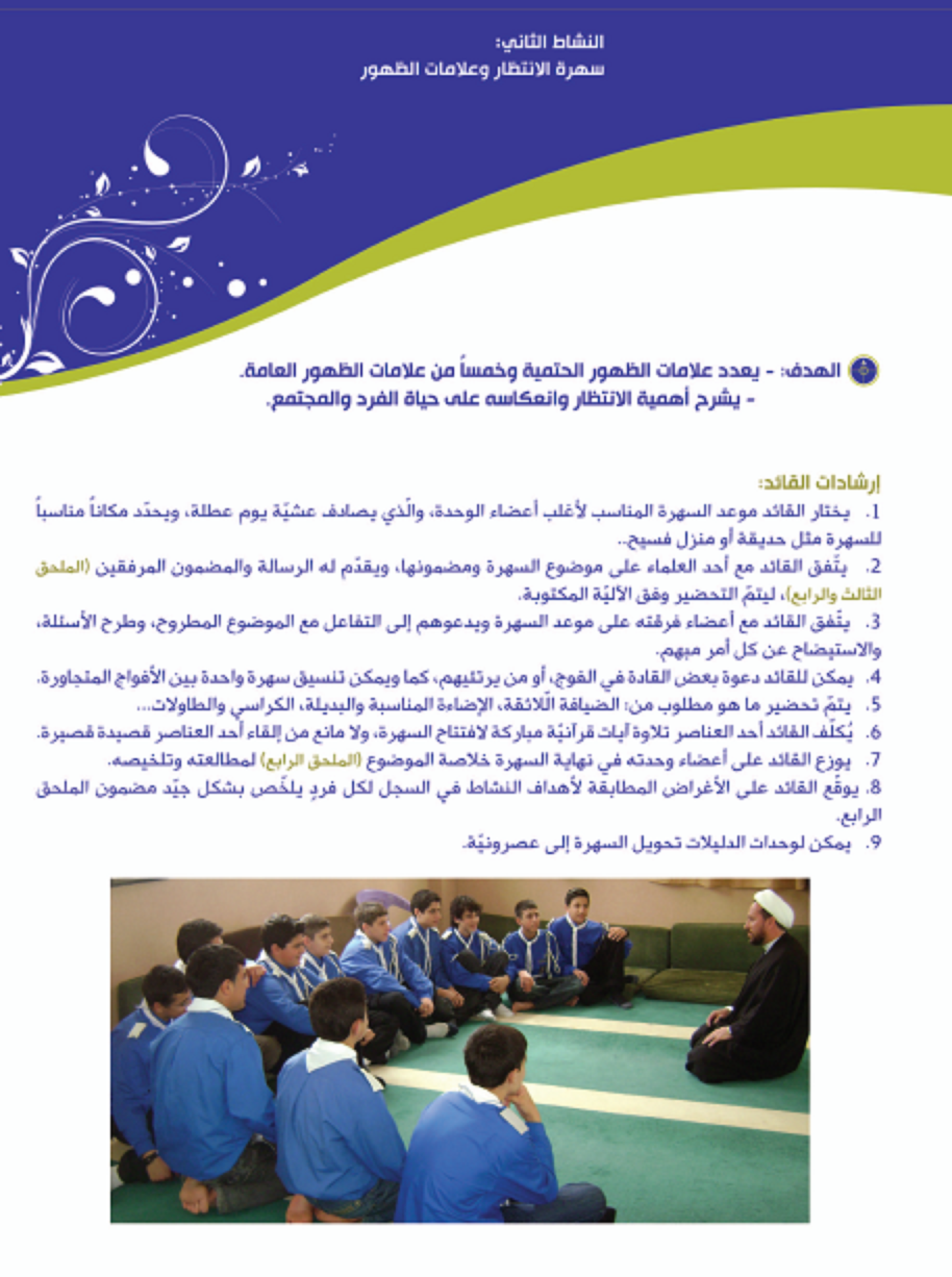"سهرة الانتظار وعلامات الظهور" هو النشاط الثاني من ملف "روح الوجود"، من ضمن "سلسلة منهاج درب السعادة" للجوالة والدليلات.