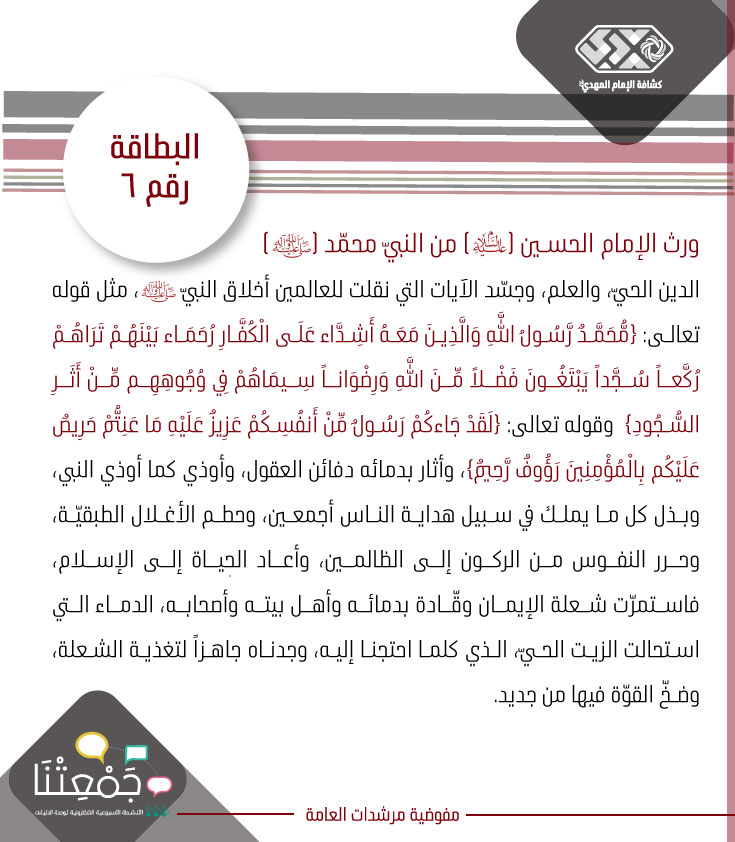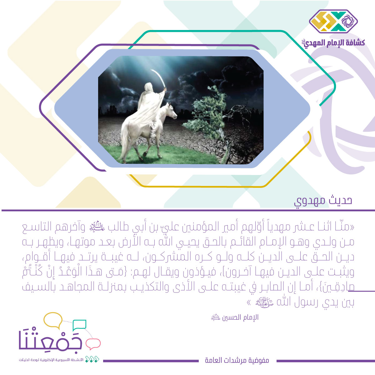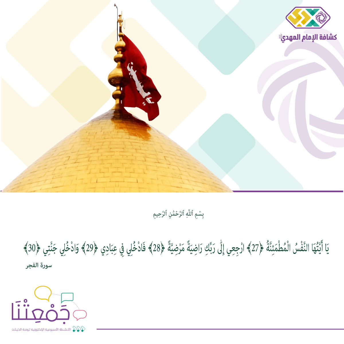 آية قرآنية مباركة (من سورة الفجر ) وحديث مهدوي والسلام على قائم آل محمد عج والترحيب | 5د | بوست الآيات والاحاديث وبطاقة الهوية للإمام الحسين (عليه السلام) | |