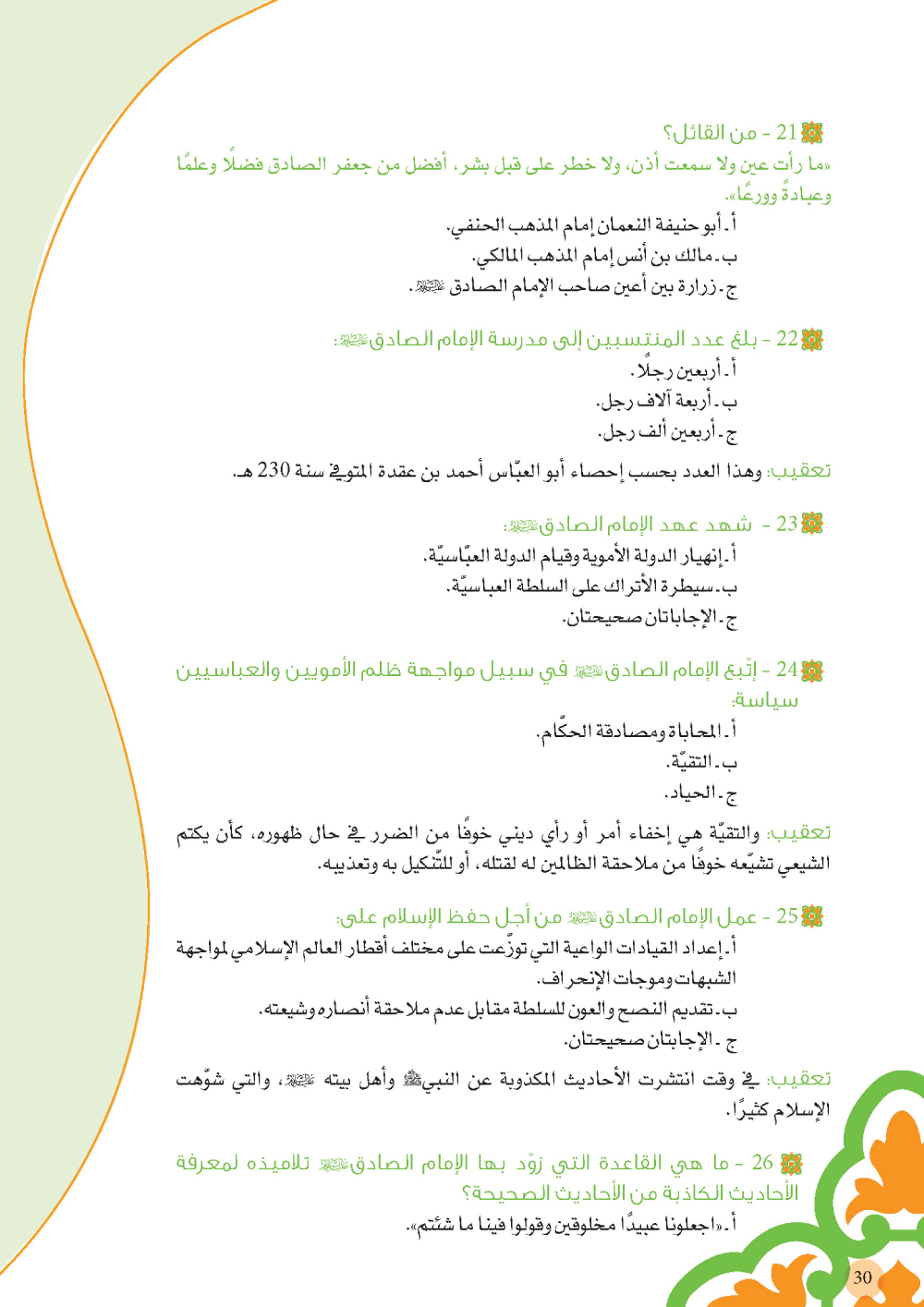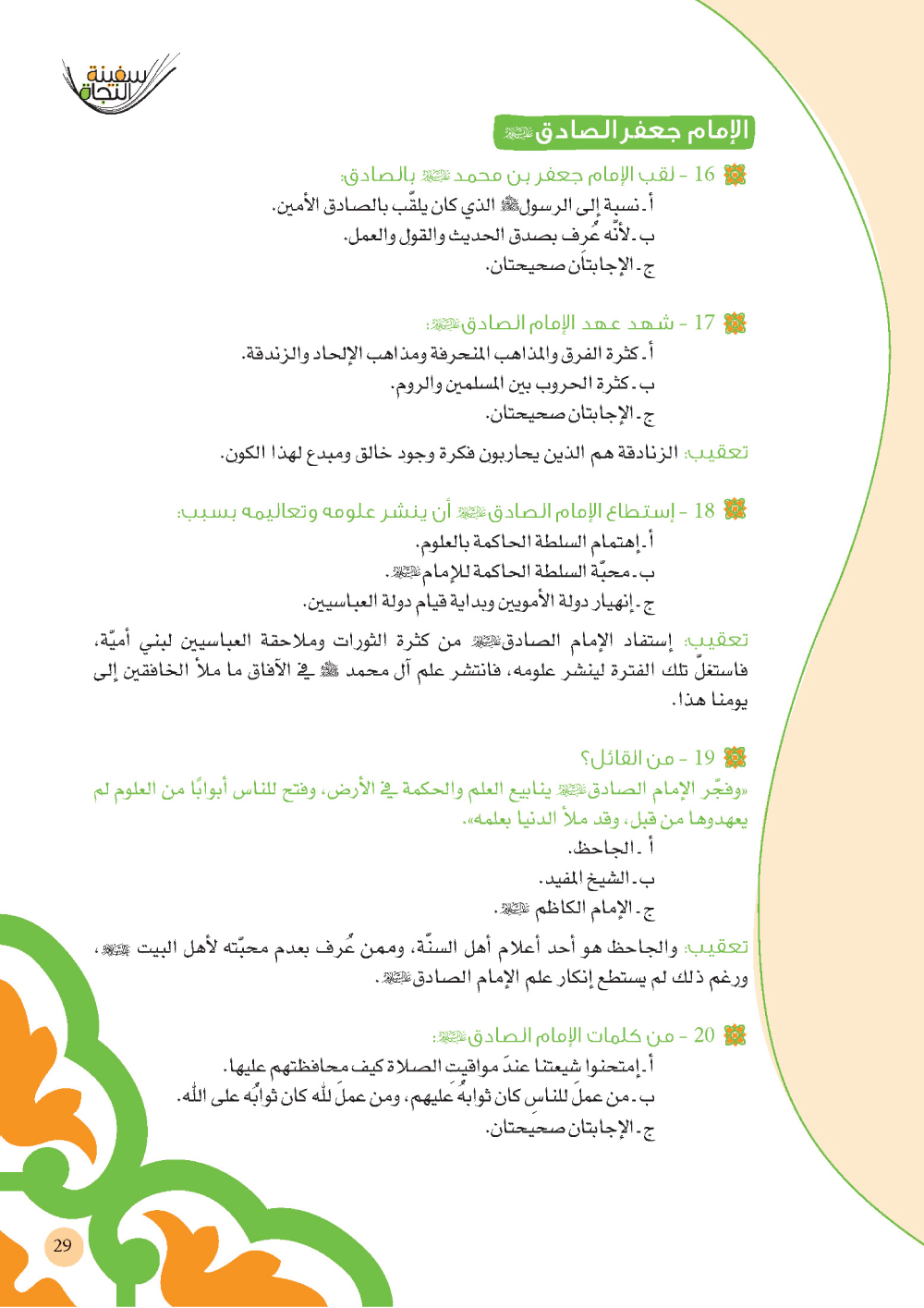 يطلع على دور الامامين الباقر والصادق (عليهما السلام) في نشر فكر أهل البيت (عليهم السلام). (الجوالة/ الدليلات 15)
