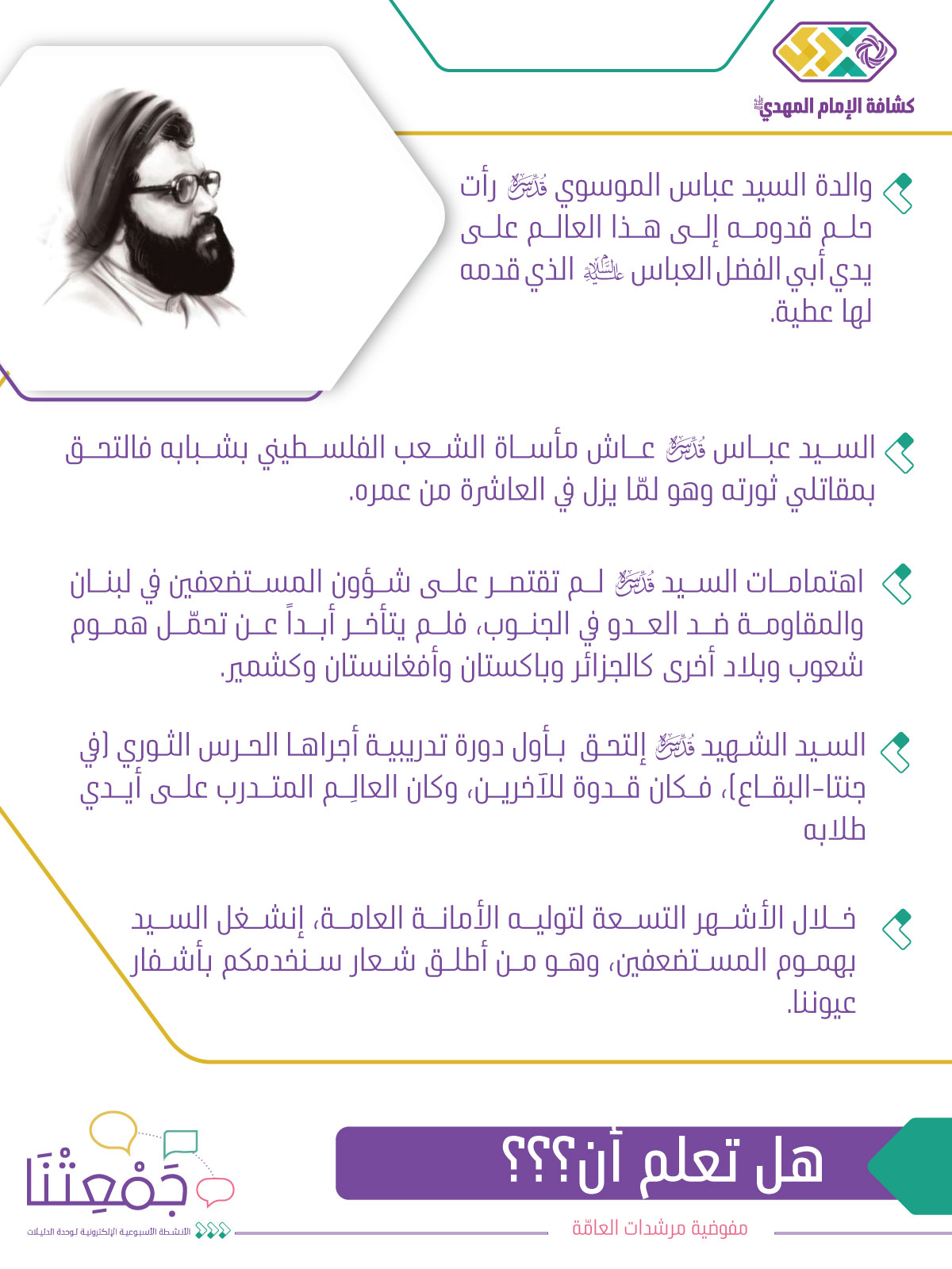 • إرسال لينك اللعبة حول أهم محطات حياة السيد عباس الموسوي (رضوان الله عليه).