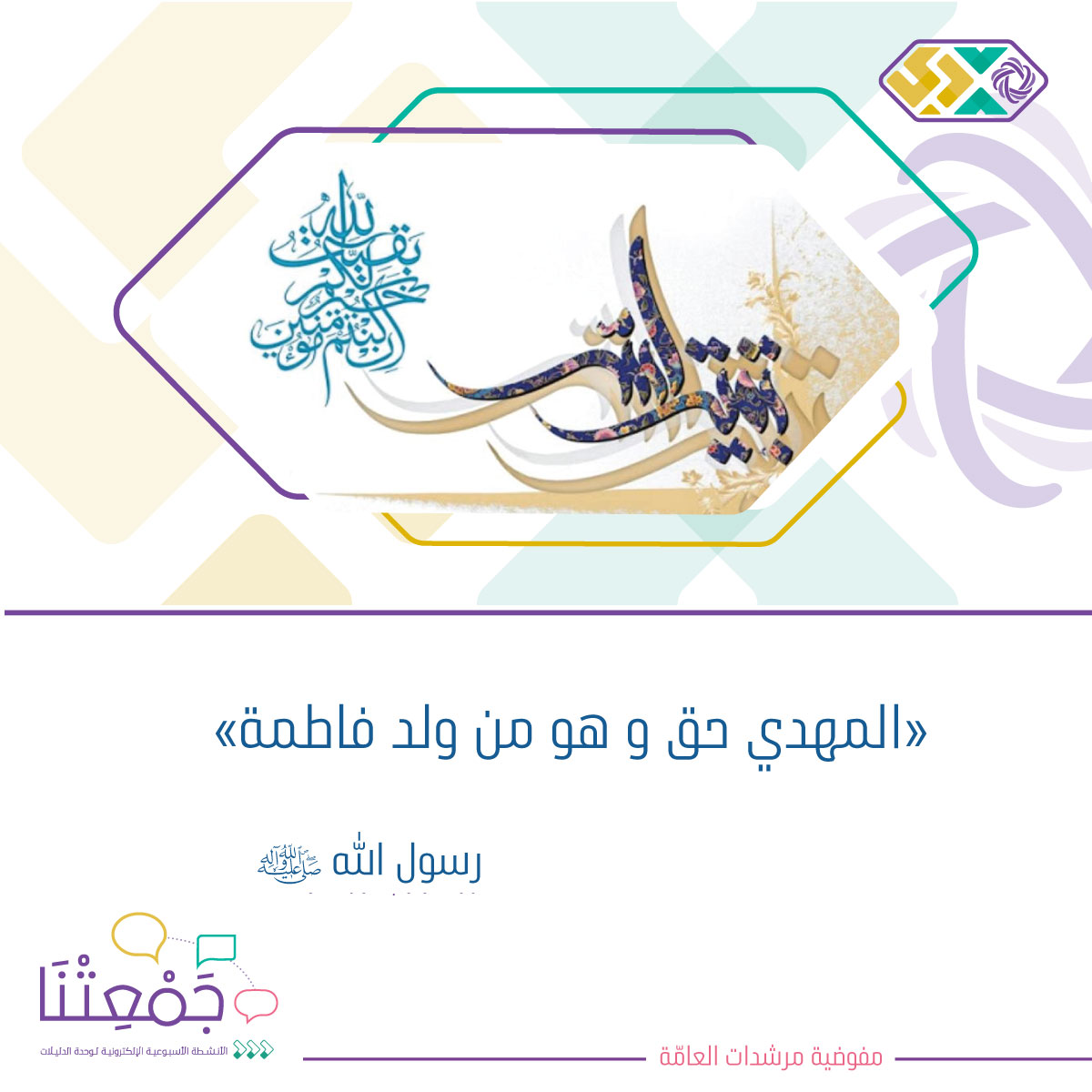ورد عن النبيّ محمد صلّى الله عليه وآله: " المهدي حق و هو من ولد فاطمة ".