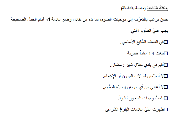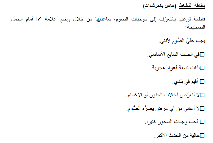 - يوزِّع القائد على المشاركين بطاقة النشاط، ويطلب منهم حلَّها.