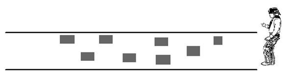 - يختار القائد أحد المشاركين، ويعصب عينيه بفولار، وعليه المشي ضمن الخطّين ودون الإصطدام بالصناديق الموجودة على الأرض والتي تمثّل الألغام.