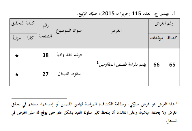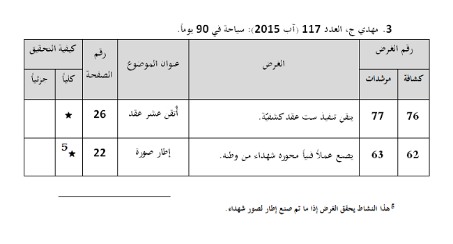 -إشرح لأفراد وحدتك، أنّ هناك بعض من العناوين المدرجة في المجلة تساعدهم في تحقيق مطالب السجل، وقدّم لهم أمثلة وفقًا لما ورد في الجداول أدناه.