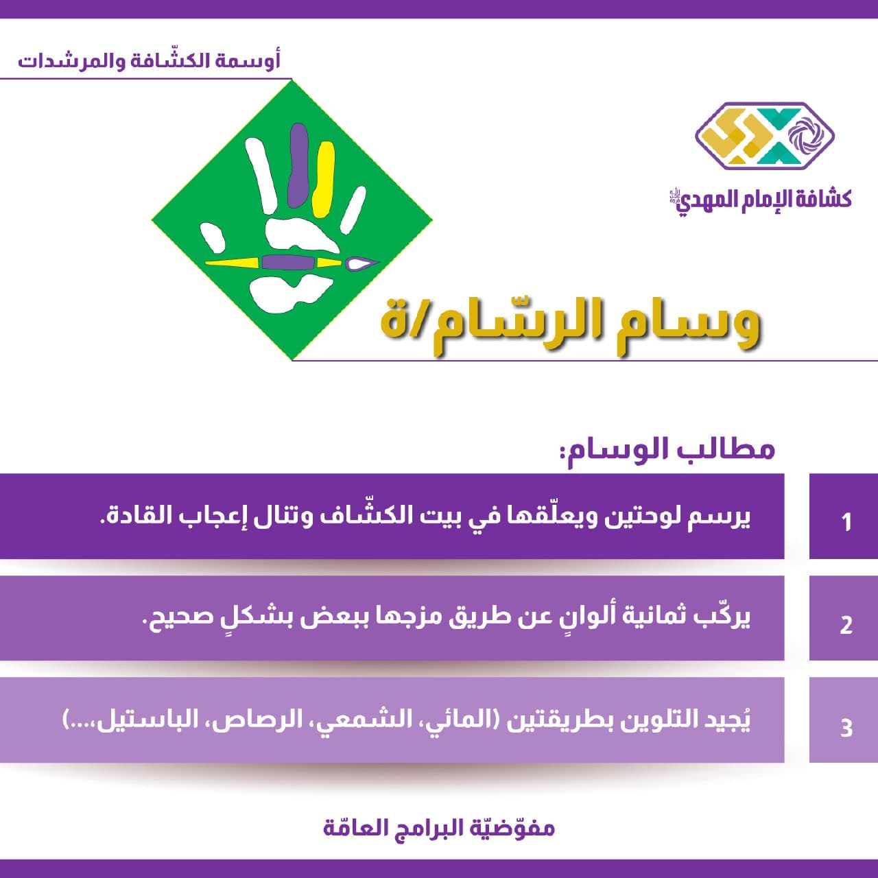 يرسل القائد/ ة بطاقة وسام الرسّام/ة، ويشجع المشاركين لتحقيق مطالبه لنيله. بطاقة الوسام