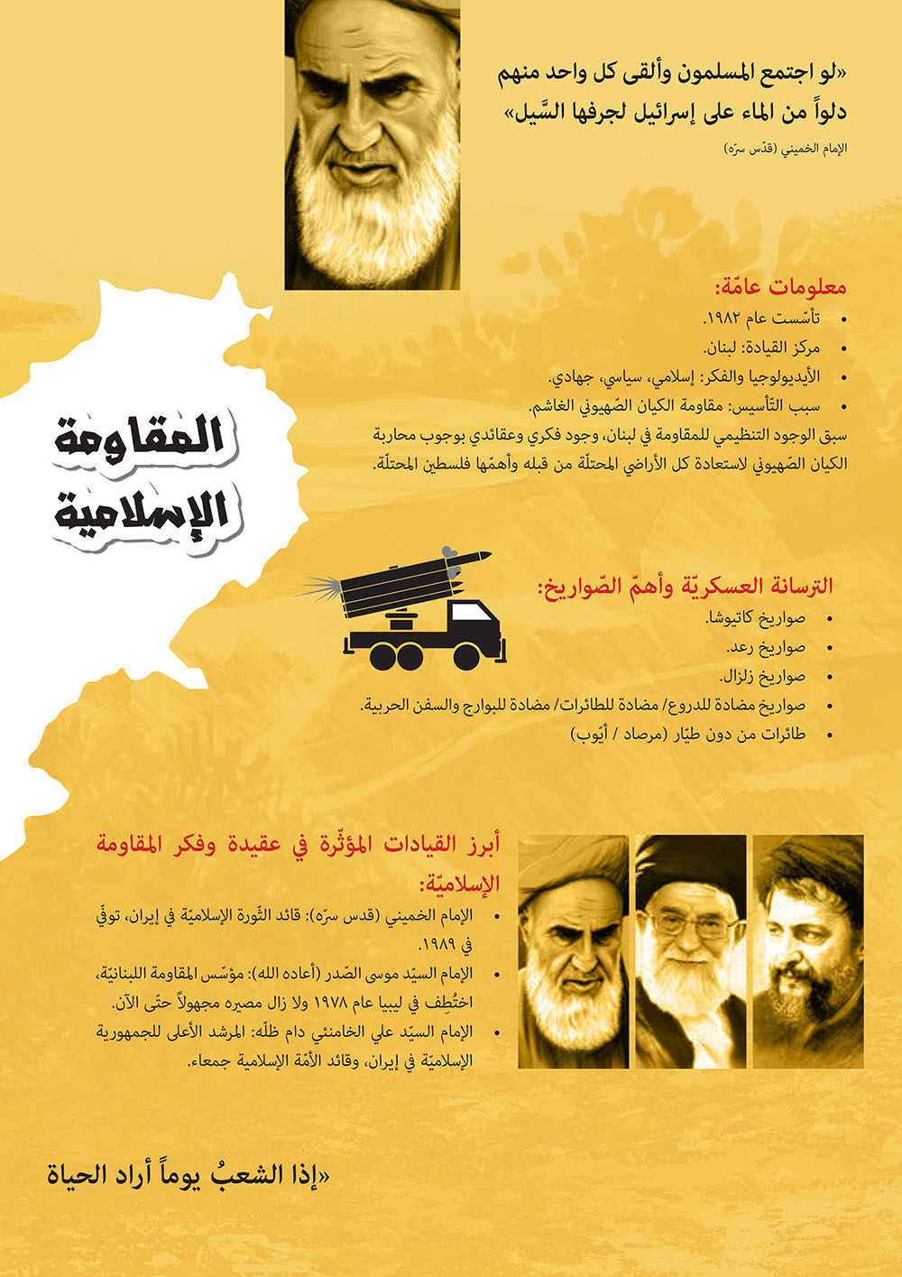 - يرسل القائد خريطة لبنان، ويسأل المشاركين: إلامَ يشير الجزء الملوّن بالأصفر في أسفل الخريطة، يأخذ الإجابات ويعقّب. (يشير هذا الجزء من الخريطة إلى المنطقة الجنوبيّة التي حرّرتها المقاومة في في 25 أيار 2000)