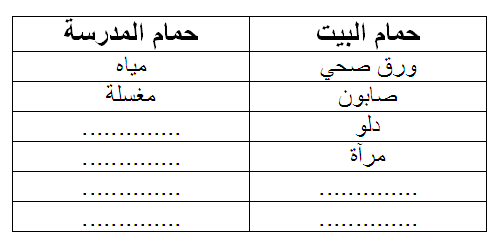 لاحظ محتويات حمّام البيت وحمّام المدرسة وأضف ما تراه ناقصاً :