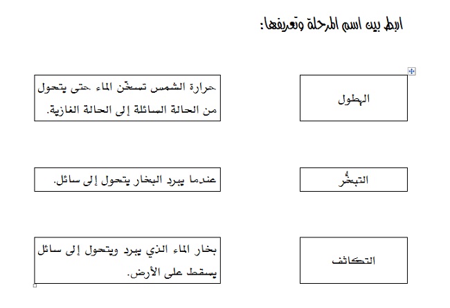 - يبدأ القائد بالحديث: الماء يتحرك في رحلة دائرية مستمرة في الطبيعة؛ ولها 3 مراحل: التبخر، التكاثف، الهطول.