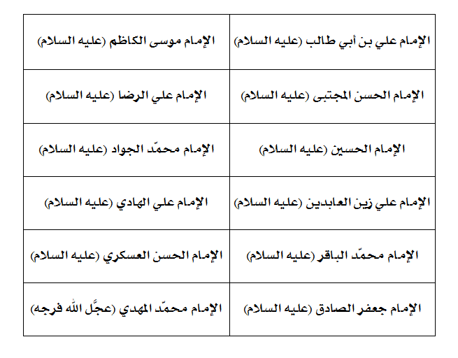 الغرض الذي يحقّقه النشاط: يعدِّد أسماء الأئمّة (عليهم السلام) بالترتيب.