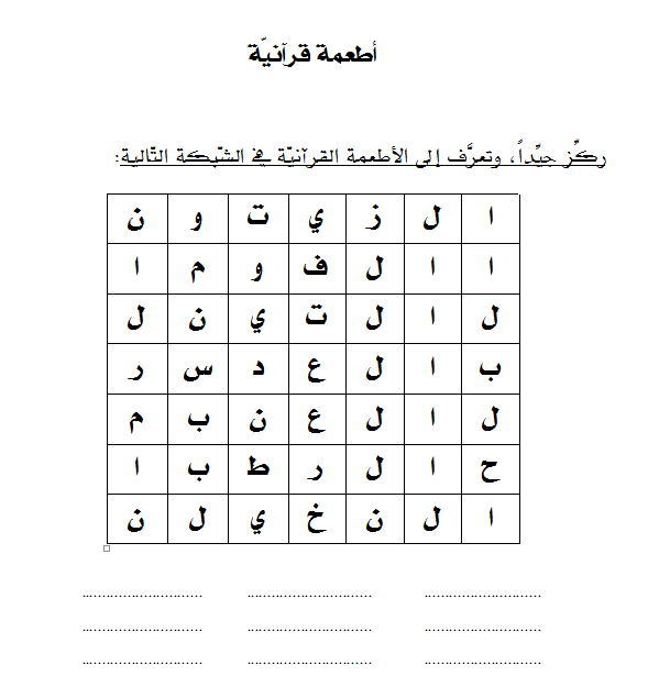 - يعرض الآيات التي وردت فيها الأطعمة الواردة في الشّبكة.