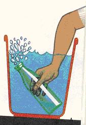 2. أَمِلْ فوهة القنّينة ببطء نحو سطح الماء(أنظر الرسم).