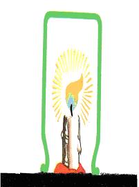 1. ثبّت الشمعة على اللوحة، وأشعلها.(الرسم أ)