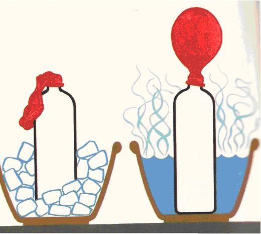 الإستنتاج: أن الهواء يتمدد عندما يسخن(البالون سوف ينتفخ)، ويتقلّص عندما يبرد(البالون سوف يبقى كما هو).