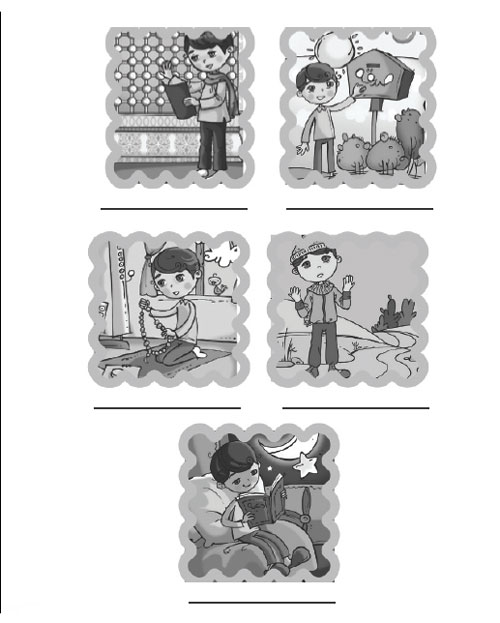آلية التنفيذ: يوزّع القائد على المشاركين الملحق رقم 1، ويطلب منهم التمعّن في الصور، وكتابة تحت كل صورة الفعل الذي يقوم بها الولد، واستنتاج بعض الآداب التي يجب أن نتحلّى بها في علاقتنا مع الإمام(عجل الله فرجه) من خلال الصور.