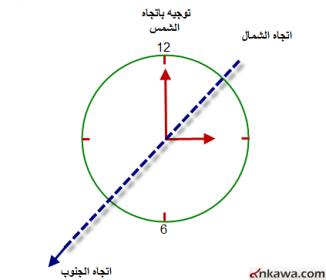 ثالثاً: قف وراء الخط بحيث تكون العلامة الأولى إلى يسارك، والعلامة الثانية إلى يمينك، فأنت الآن متّجه إلى الشمال (العلامة الأولى تدل على جهة الغرب، والعلامة الثانية تدل على جهة الشرق).