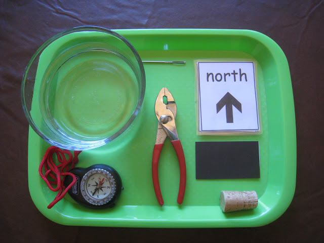 ضع الإبرة بعناية على الجسّم الذي طفا على الماء، ستلاحظ دوران طرفها المدبّب تجاه الشمال، وبالتالي سيكون الطرف الآخر باتجاه الجنوب.