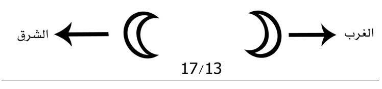 2. القمر: في النصف الأول من الشهر القمري يكون القمر هلالاً، وفي هذه الأيام تدل الجهة المحدّبة فيه على الغرب، وفي النصف الثاني من الشهر القمري يكون أيضاً هلالاً، وفي هذه الأيام تدل الجهة المحدّبة فيه على الشرق (أنظر الشكل).