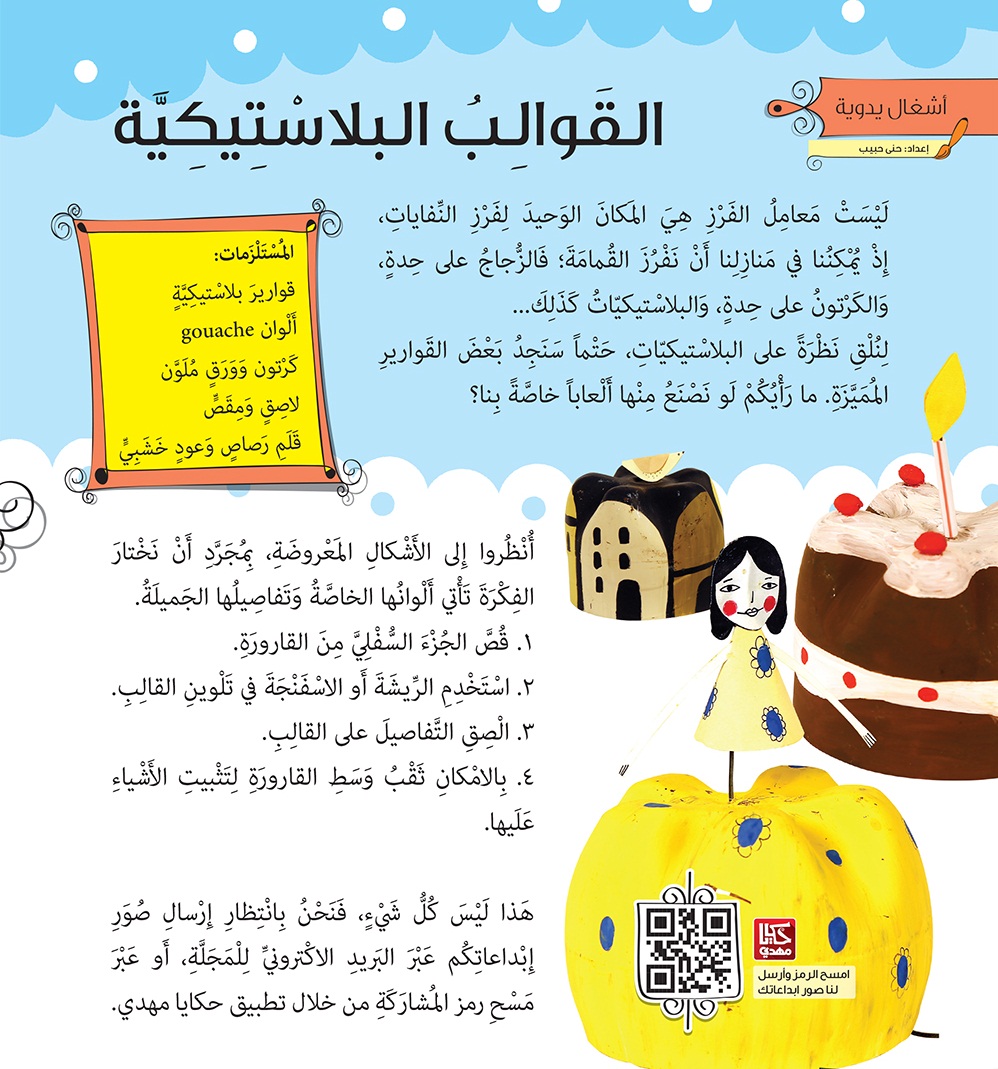 نضع بين أيديكم نشاط "القوالب البلاستيكية" من مجلّة مهدي فئة ب- العدد 121.