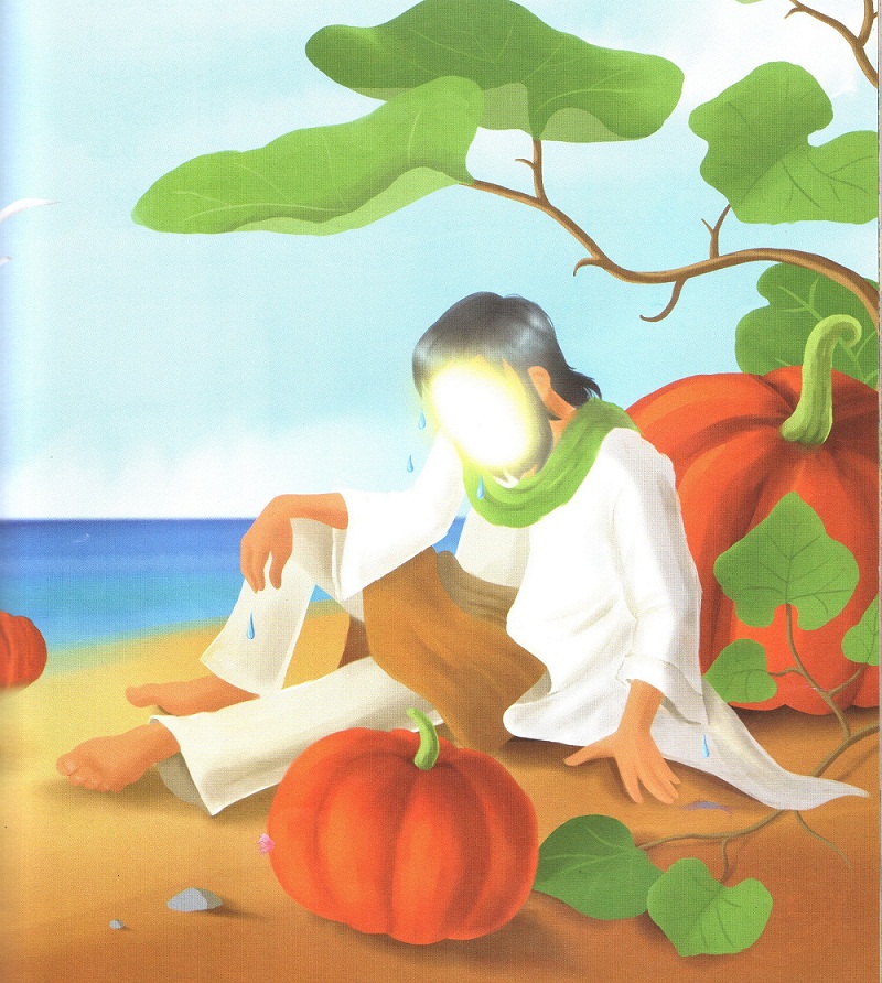 أمر الله الحوت أن يُخرِج يونس (ع) من بطنه، فاتّجه الحوت إلى الشّاطئ ووضع النبي يونس (ع) في أرٍض ليس فيها زرعٌ ولا شجر، وكان مريضاً مُتعباً. فأمر الله شجرةً من أشجار اليقطين أن تنبت في جواره لتظلِّله بورقها النّاعم العريض، وليأكل من ثمرها كلّما شعر بالجوع.
