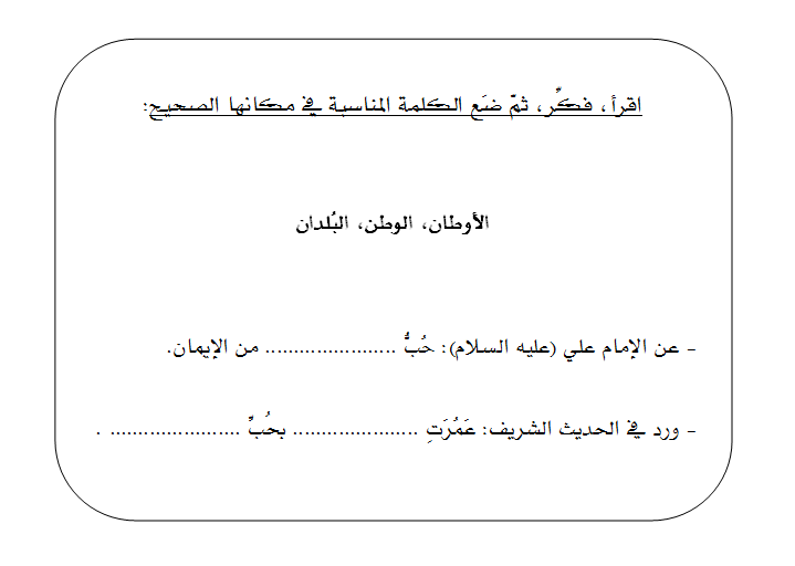 أحبُّ وطني--- عمل فردي + استجواب--- 10د.