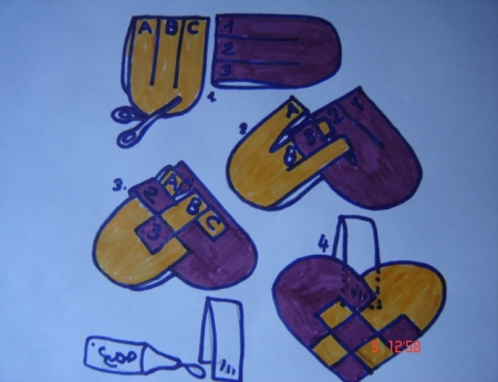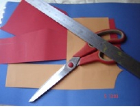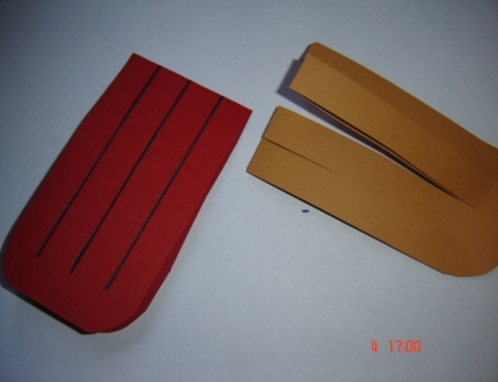 قم بقص ورق من لونين من إختيارك وقم بقصهم مثل الباترون الموضح بالصورة.