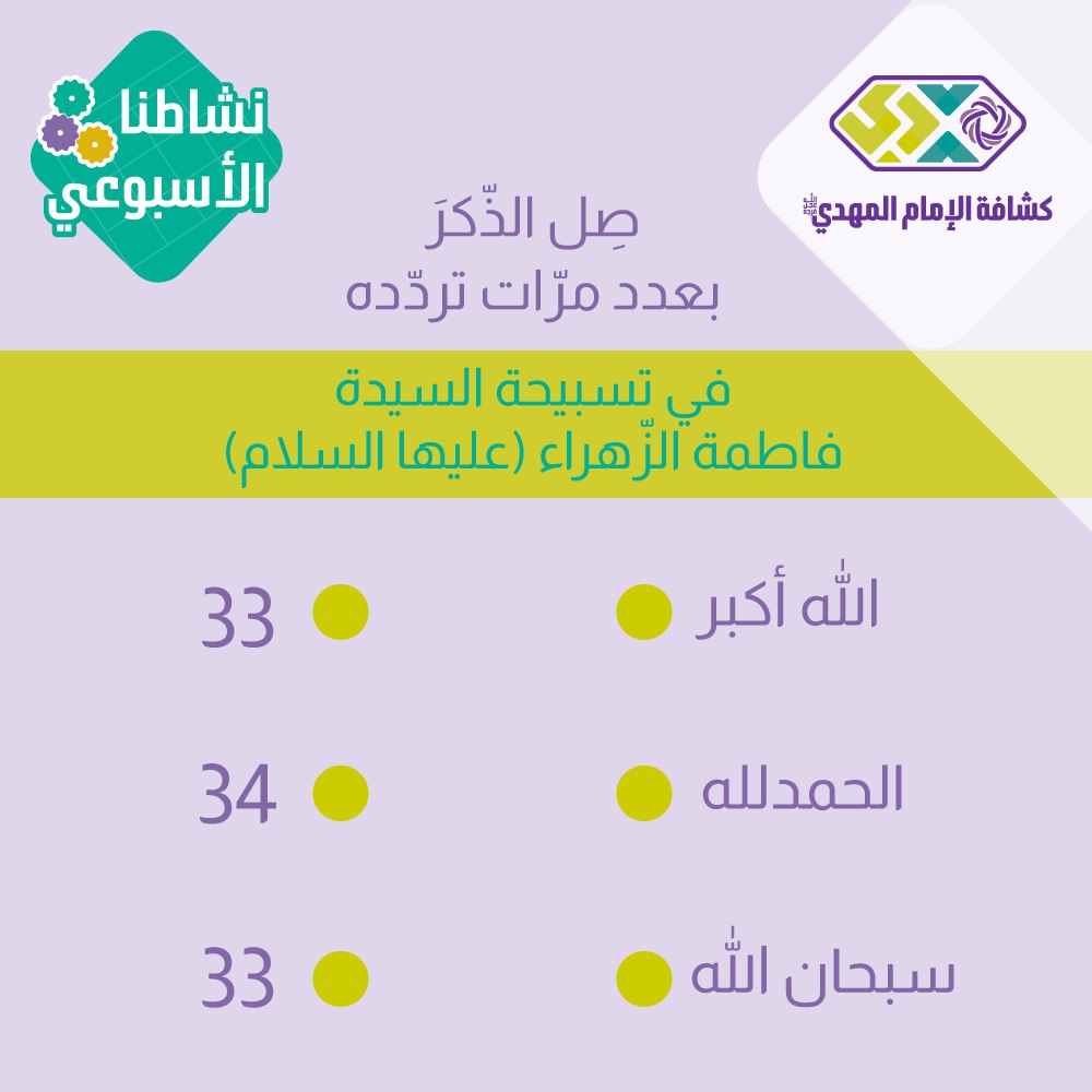 - يعقّب القائد(ة) اليوم سنتعرّف على تسبيح السيّدة الزهراء (عليها السلام).