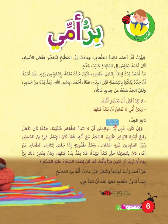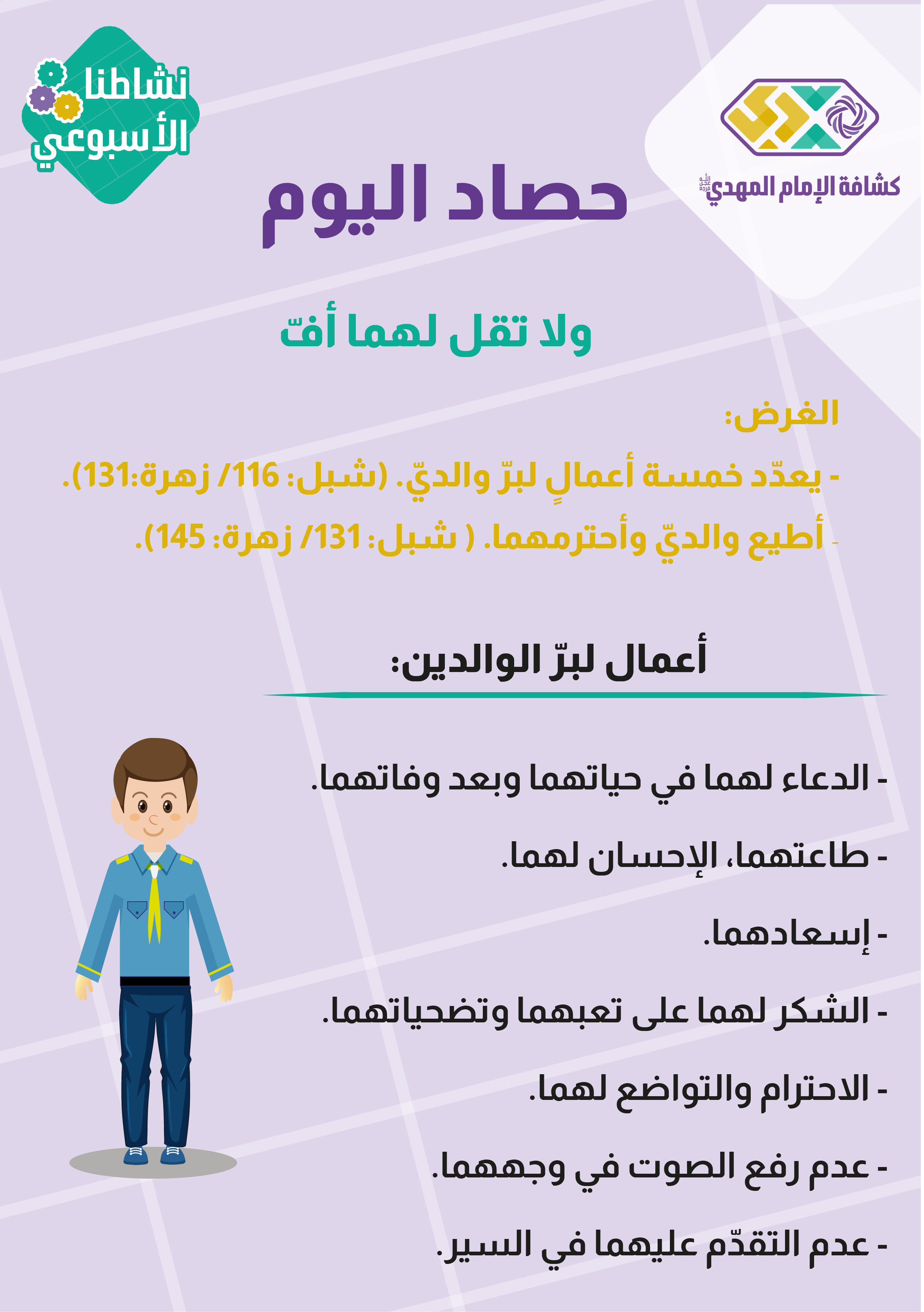 - أطيع والديّ وأحترمهما. ( شبل: 131/ زهرة: 145).