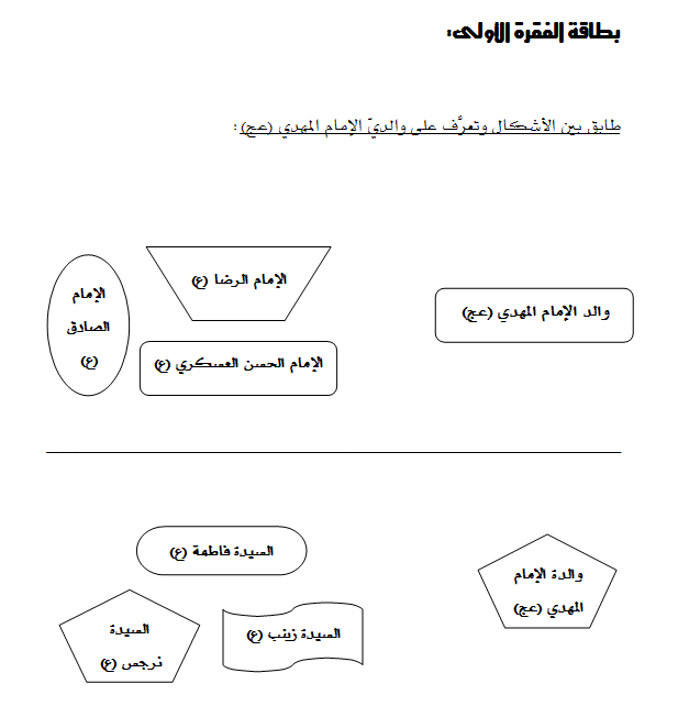 (والد الإمام المهدي (عج): الإمام الحسن العسكري (ع)، والدة الإمام المهدي (عج): السيدة نرجس).