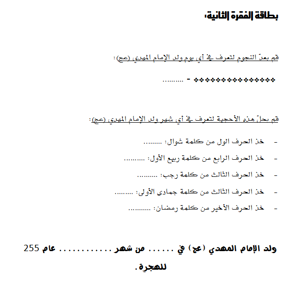 (ولد الإمام المهدي في 15 من شهر شعبان عام 255 للهجرة).