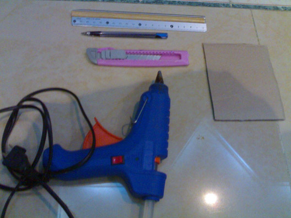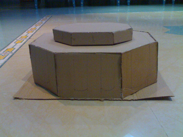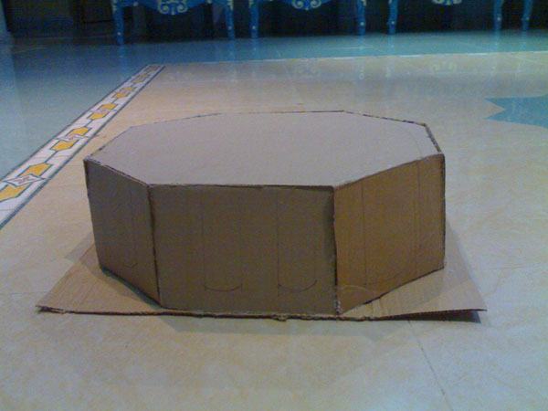 • يقص سداسي الشكل وستة مربعات من الكرتون المقوّى ولكن حجم صغير ويلصقهم.