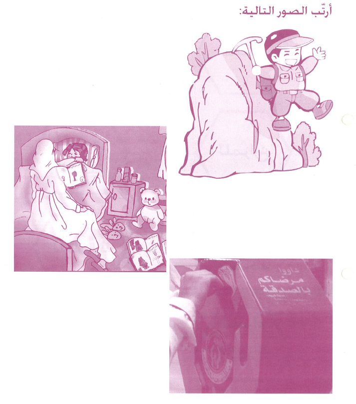 - يطلب منهم ترتيب الصور، بعد أن يشرح لهم حديث الرسول (صلّى الله عليه وآله): "داووا مرضاكم بالصدقة".